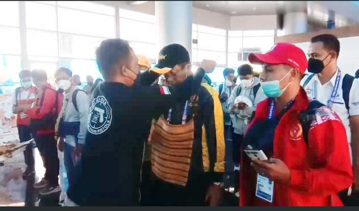TIMIKA–Kontingen PON Kalsel yang dipimpin Fitri Rifani langsung disambut panitia penyelenggara PON XX 2021, Jumat (24/9) siang, di Bandar Udara Mozes Kilangin Timika, Kabupaten Mimika, Provinsi Papua.
