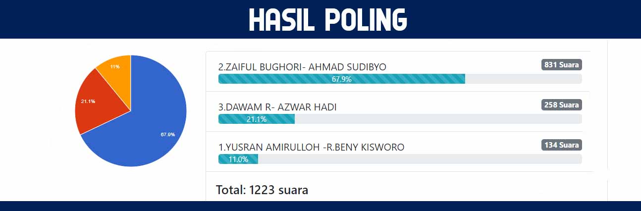 Nah dari hasil poling yang disajikan Polingkita.com, ternyata pasangan nomor urut dua Zaiful Bokhari-Ahmad Sudibyo tetap bertengger di pemuncak poling.