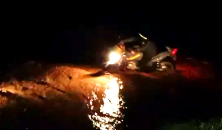 Setelah mencoba bertahan, ia akhirnya terseret arus sungai bersama sepeda motor dinas yang dikendarainya. Suasana ini sempat menimbulkan kepanikan.