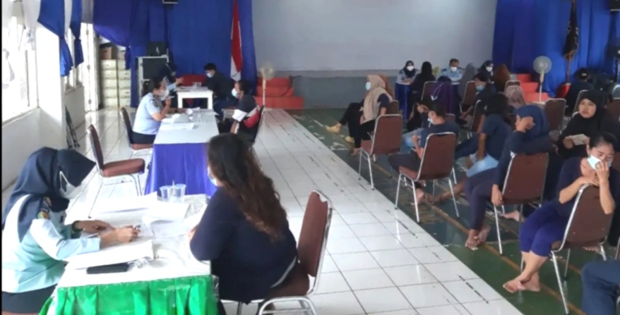 TANGERANG – Lapas Perempuan Tangerang melaksanakan screening pada warga binaan pemasyarakatan (WBP) yang akan mengikuti rehabilitasi eosial dan medis di Aula Lapas Perempuan Kelas IIA Tangerang, Selasa (23/11/2021).
