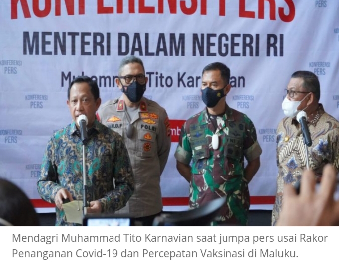 Hal itu disampaikan Mendagri saat konferensi pers usai Rapat Koordinasi (Rakor) Penanganan Covid-19 dan Percepatan Vaksinasi di Maluku di Aula Kantor Gubernur Maluku, Jumat (24/12/2021).