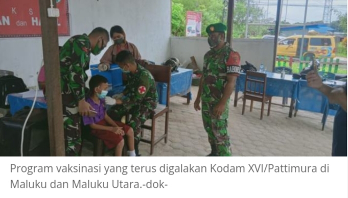 Ambon Kodam XVI/ Pattimura melaksanakan  program percepatan vaksinasi di seluruh Maluku dan Maluku Utara, Kamis (24/2/2022). Vaksinasi ini dilakukan serentak di seluruh faskes (fasilitas kesehatan) TNI dan juga tim vaksinator mobile di seluruh Kodim jajaran Kodam XVI/ Pattimura.
