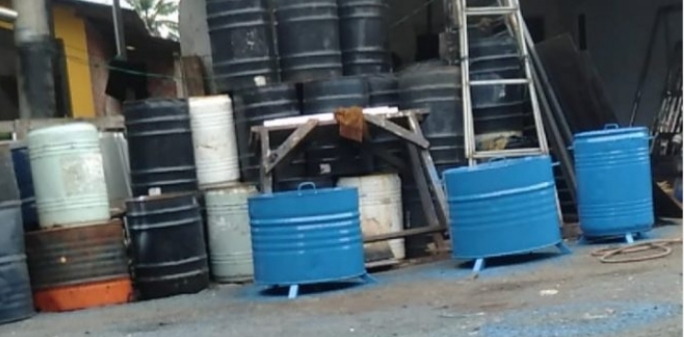 Sejak seminggu belakangan, total sudah 25 buah tong sampah yang terjual dan rata-rata sesuai pesanan tong sampah dari drum tersebut dicat dengan warna biru.