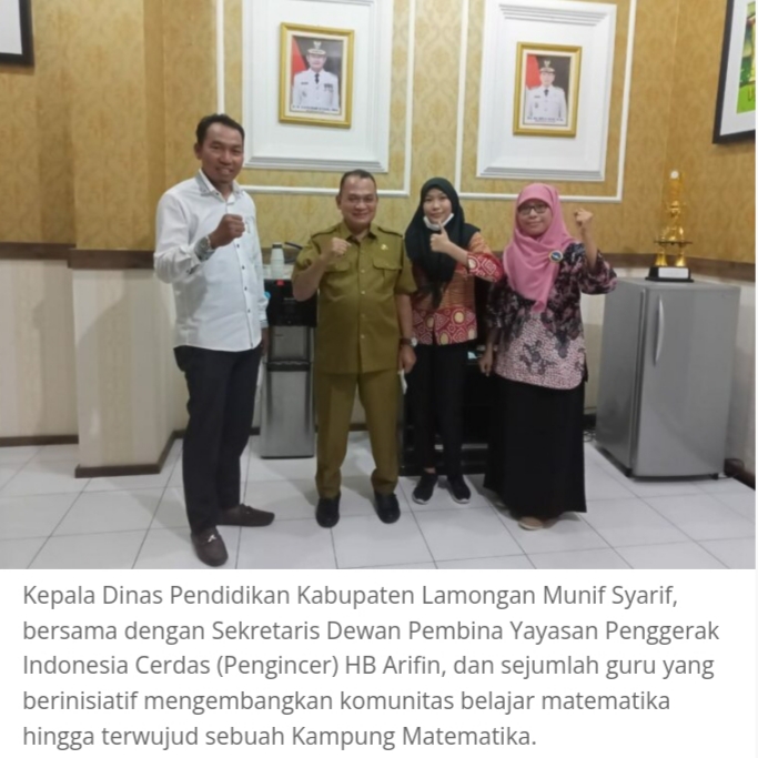 Yayasan Penggerak Indonesia Cerdas (Pengincer) memberikan dukungan kepada empat guru di Lamongan yang ingin memperbaiki proses pembelajaran matematika di kelasnya. Dukungan diberikan dalam bentuk pelatihan literasi numerasi melalui skema Gerakan Nasional Pemberantasan Buta Matematika (Gernas Tastaka).