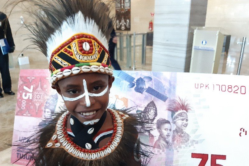 JAKARTA – Seperti mimpi. Agustinus Rumere, bocah laki-laki berusia 10 tahun buah hati dari pasangan Fitriyani Seseray dan Niko Rumere tak menyangka wajahnya bisa tampil di uang pecahan Rp75 ribu. Perasaan suka-cita makin komplet, setelah uang baru itu menjadi edisi spesial Peringatan Kemerdekaan (UPK) ke-75 tahun.