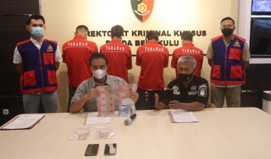 BENGKULU – Penyidik Subdit III Ditreskrimsus Polda Bengkulu, menetapkan empat orang sebagai tersangka dalam operasi tangkap tangan (OTT) Jumat (24/9/2021) di depan BRI Unit Pondok Kelapa Kabupaten Bengkulu Tengah.