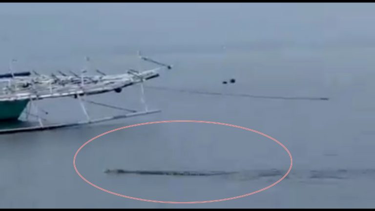 Dalam rekaman video pendek yang viral di media sosial, terlihat seekor buaya dengan tenang berenang menyusuri pantai, hingga mendekati kapal bagang nelayan.