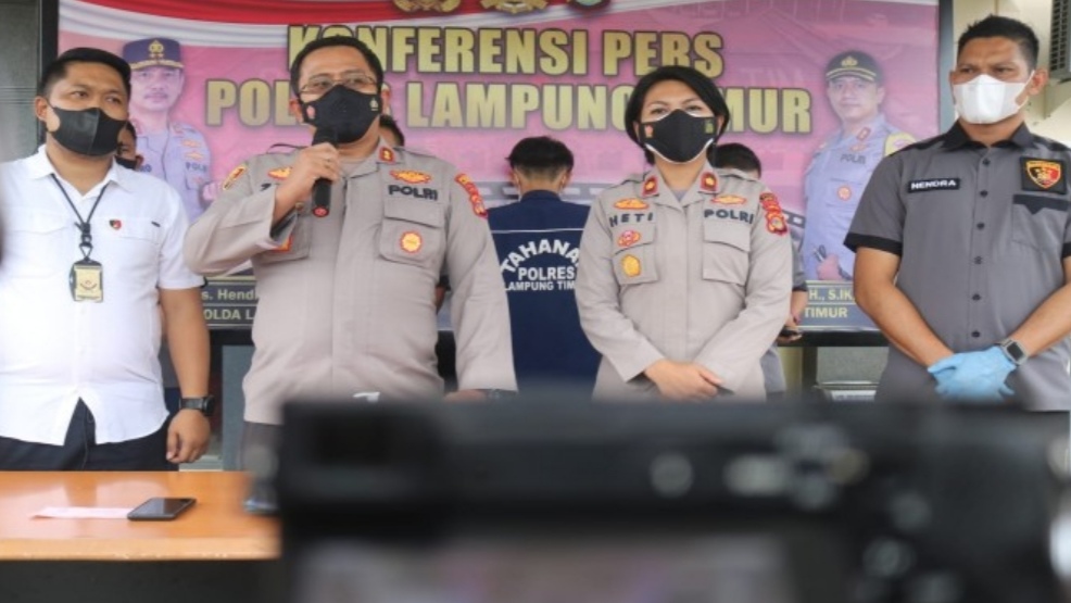 Kapolres Lampung Timur AKBP Zaky Alkazar Nasution SH SIK MH, didampingi Kasat Reskrim AKP Ferdiansyah, menjelaskan tersangka adalah RA (25) warga Desa Labuhan Ratu, Kecamatan Pasir Sakti. Selasa (26/10/2021).