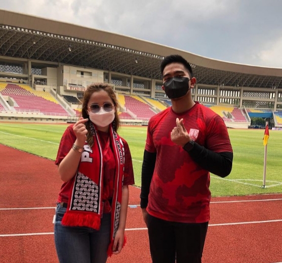 Dalam foto tersebut, terlihat keduanya kompak mengenakan jersey Persis Solo dan bergaya finger love.
