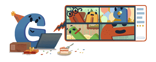 Sementara, pada doodle tahun ini, tampak huruf “G” sedang merayakan ulang tahun — lengkap dengan topi, kado serta kue ulang tahun — bersama dengan huruf lain pada kata “Google,” namun dilakukan lewat panggilan video.