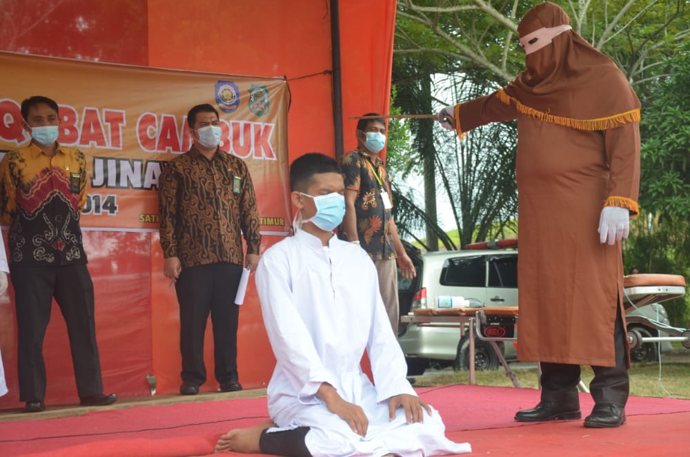 Tiga pelanggar Hukum Jinayah atas kasus berbeda dieksekusi di halaman Kantor Dinas Syariat Islam, Aceh Timur. Mereka dihukum karena terbukti dan diyakini bersalah oleh hakim telah melakukan jarimah (perbuatan-perbuatan melanggar) pemerkosaan dan jarimah zina terhadap anak di bawah umur.