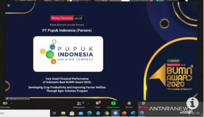 Penghargaan itu diterima oleh Wakil Direktur Utama PT Pupuk Indonesia (Persero) Nugroho Christijanto secara simbolis melalui daring di Jakarta, Jumat.