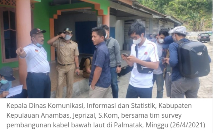 “Alhamdulillah, hari ini, konsultan dan pihak Telkom sudah turun ke Kecamatan Jemaja dan pulau Matak didampingi dinas terkait melakukan survey lokasi pergelaran lending point kabel laut optik yang menghubungkan dari Tarempa ke pulau Jemaja dan dari Tarempa ke Pulau Matak,” ungkap Bupati Kepulauan Anambas, Abdul Haris SH, didampingi Wakil Bupati, Wan Zuhendra, kepada sejumlah awak media di Jemaja, Minggu (26/4/2021).