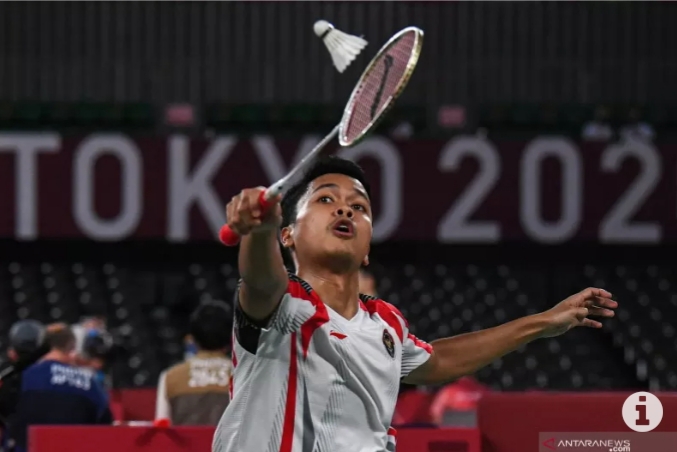 TOKYO–Pebulu tangkis tunggal putra Anthony Sinisuka Ginting memenangkan babak penyisihan Grup J Olimpiade Tokyo, 21-12, 21-10, atas atlet Rusia Sergey Sirant.