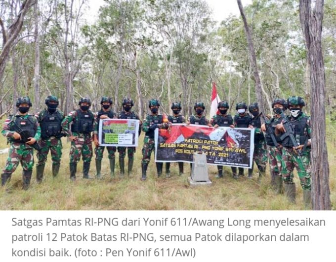 “Satgas Yonif 611/Awang Long memang mempunyai salah satu tugas pokok yaitu Patroli Patok Batas. Sebagai satuan pengamanan perbatasan RI-PNG dalam menjaga kedaulatan NKRI di wilayah Papua, seyogianya mengatasi ancaman yang dihadapi. Baik pada masa sekarang maupun mengatasi ancaman yang mungkin terjadi. Termasuk yang akan datang,” ungkap Dansatgas Letkol Inf Albert Frantesca dalam rilisnya yang diterima DETAKKaltim.Com, grup Siberindo.co, Rabu (28/7/2021) pukul 10:33 Wita.