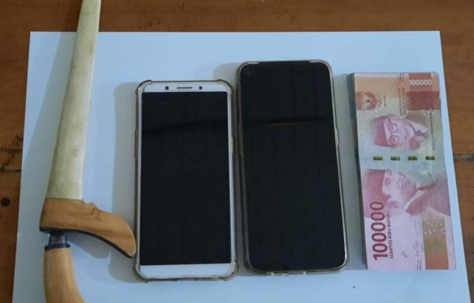 Dalam penggeledahan, polisi menyita sebilah badik, dua handphone, dan uang tunai Rp 2 juta.