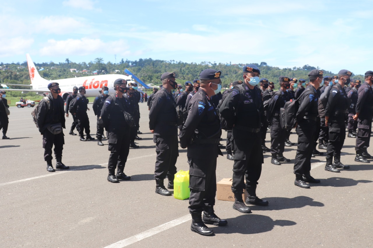 MANOKWARI— Sebanyak 300 personel Brimob Nusantara mendarat di Papua Barat pada Jumat (27/11/2020) sebagai Bantuan Komando Operasi (BKO) dalam rangka pengamanan Pilkada Serentak, 9 Desember mendatang.