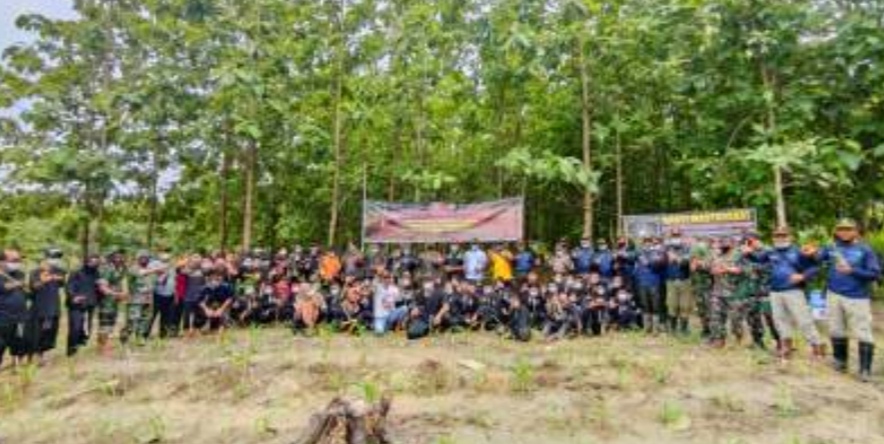 LAMONGAN – Saudin, koordinator berserta anggota PSHT bersama anggota Koramil 0812 Sambeng dan perangkat Desa, menanam bibit kayu putih di petak 5c-3 RPH Grenjengan BKPH Kambangan, Kecamatan Sambeng, Kabupaten Lamongan. Sabtu (27/11/2021).