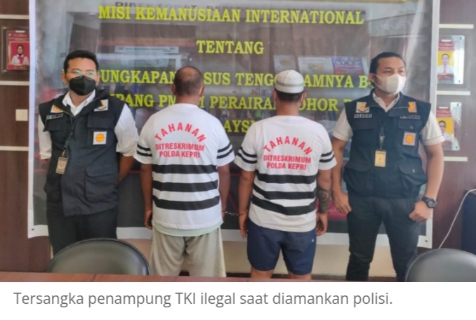 BATAM–Dua orang penampung atau pengurus Pekerja Migran Indonesia berinisial JI Alias J dan berinisial AS Alias AB ditangkap tim gabungan Dit Reskrimum Polda Kepri dan Polres Bintan. Dua orang tersangka ini ditangkap karena melakukan pengurusan pengiriman Pekerja Migran Indonesia Ilegal atau TKI ilegal yang mengalami kecelakaan kapal di Johor Bahru, Malaysia beberapa waktu yang lalu. Dalam kecelakaan kapal tersebut 21 orang TKI meninggal dan 25 orang lagi hilang dan masih dalam pencarian.