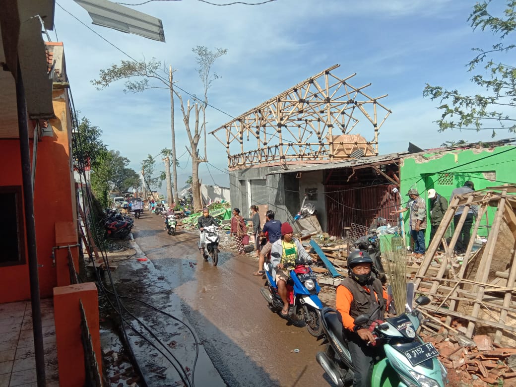 Sejumlah bangunan rusak, beberapa orang cedera. Termasuk Ny Deden, pengelola warung di tepi jalan Ciharalang.