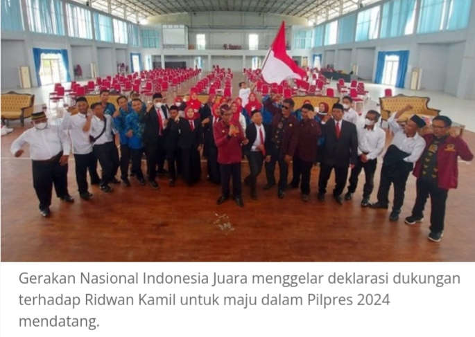 Relawan yang tergabung dalam Gerakan Nasional Indonesia Juara menggelar deklarasi mendukung Ridwan Kamil sebagai calon Presiden 2024, Senin (28/3/2022).