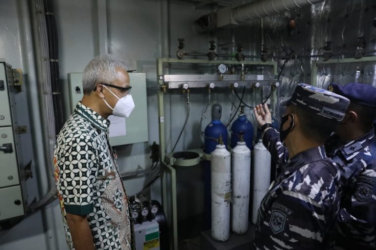 Sementara itu, Gubernur Jawa Tengah, Ganjar Pranowo menyempatkan menengok KRI dr Soeharso. Didampingi Walikota Semarang dan Kepala Dinkes Jateng, Ganjar melihat proses KRI memproduksi oksigen sampai proses pengisian tabung.