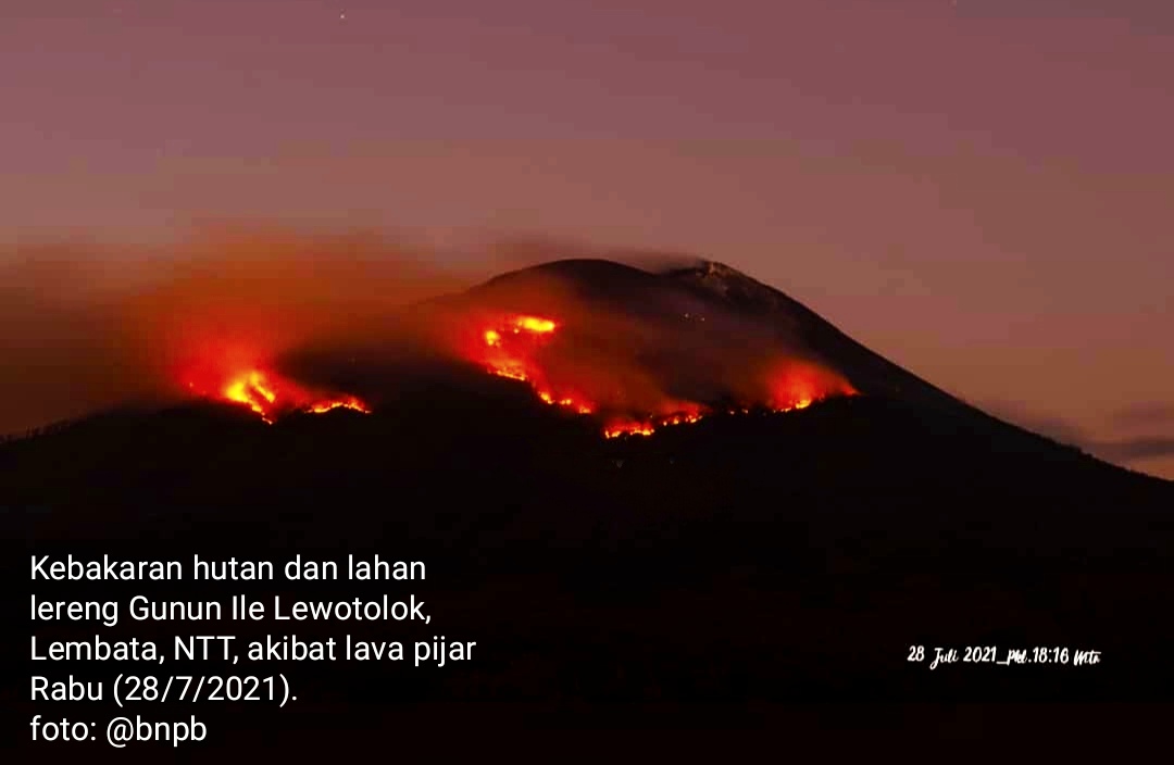 KUPANG – Guguran lava pijar Gunung Ile Lewotolok, di Kabupatan Lembata, Nusa Tenggara Timur, Rabu (28/2021) menyebabkan kebakaran hutan dan lahan di wilayah sekitarnya.