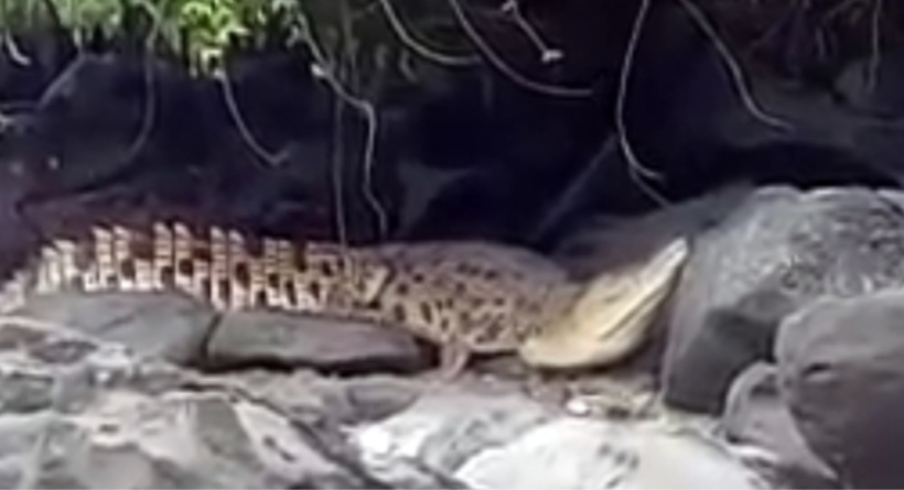 Bahkan kali ini, buaya terekam kamera naik di pinggir pantai yang jaraknya cukup dekat dengan pemukiman warga.