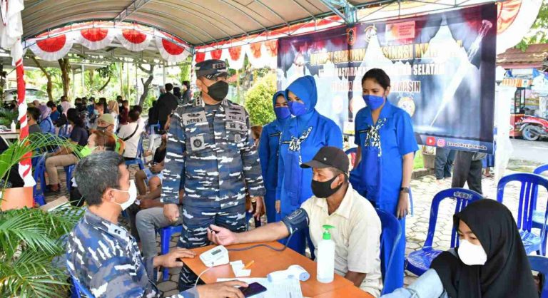 BANJARMASIN–Serbuan vaksinasi secara massal merupakan bentuk keseriusan dan komitmen Lanal Banjarmasin dalam mendukung serta menyukseskan program pemerintah sebagai upaya memerangi dan mencegah laju penyebaran Wabah Covid-19, Kamis (28/10/2021)