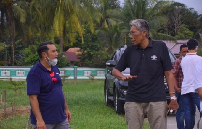 SINTANG – Bupati Sintang Jarot Winarno dan Wakil Bupati Sintang,Sudiyanto didampingi Ketua KONI Kabupaten Sintang M Chomain Wahab serta Ketua IMI Korwil Sintang Boy Rahadian meninjau lokasi rencana pembangunan sirkut road race atau sirkuit balap motor di Komplek Stadion Baning Sintang, Minggu (28/3/2021).