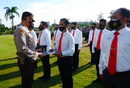 Pemberian penghargaan kepada anggota polisi yang berprestasi, dilaksanakan di halaman Mapolres diikuti personel Polres, para Kapolsek dan perwakilan anggota Polsek jajaran.