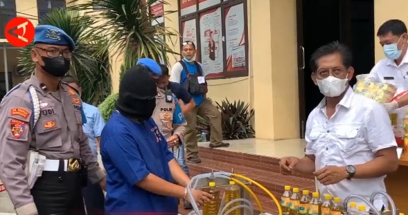 “Menjelang bulan suci Ramadhan, Polda Banten berhasil mengungkap kasus mafia minyak goreng curah yang dikemas dalam plastik berhadiah sabun cuci merek Total sebagai promo untuk menarik minat beli masyarakat terhadap produk minyak goreng yang sudah dikemas dalam botol isi 1 liter dengan merk Laban seharga Rp20.000,” kata Kabid Humas Polda Banten Kombes Pol Shinto Silitonga.