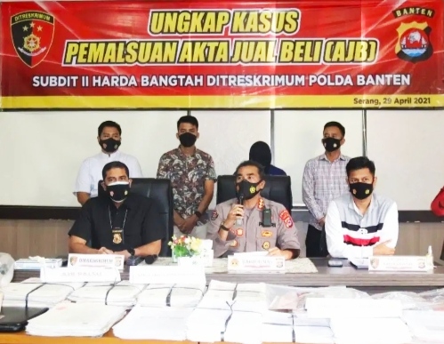 Kali ini Satgas Mafia Tanah Polda Banten mengungkap 690 akta jual beli dan akta hibah palsu di Kecamatan Pabuaran, Kabupaten Serang.