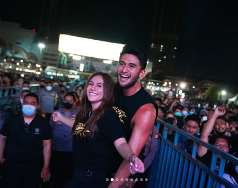 Saat hadir di konser itu pasangan beda usia 15 tahun ini tampak mengenakan kaus dengan warna sama, hitam. Mereka berdiri langsung di depan panggung musisi yang tampil, seperti dikutip Insertlive (Sabtu, 30/04/2022).