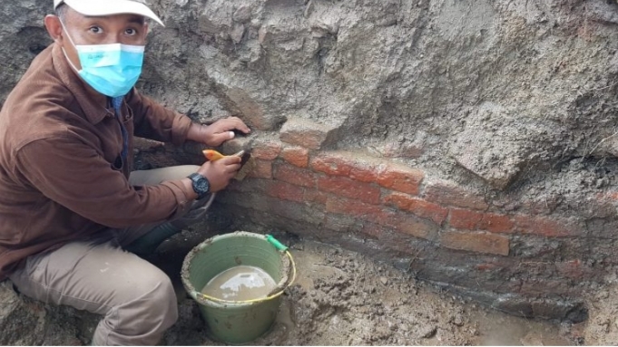 INDRAMAYU–Tim Arkeolog dari Balar Arkeologi Jawa Barat, Balai Pelestarian Cagar Budaya Banten, dan Tim Ahli Cagar Budaya Kabupaten Indramayu menemukan struktur bangunan berupa bata susun di kedalaman 1 meter.