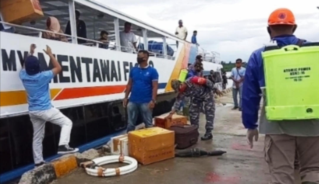 Selain itu, setiap kapal yang tiba di Mentawai selalu disambut dengan semprotan disinfektan oleh Tim Satgas Covid-19 yang selalu siap sedia.