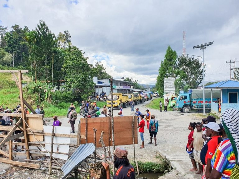 Dari kesepakatan Forkopimda dengan massa pendukung paslon, sekitar pukul 15.00 WIT, 96 unit kendaraan truk dan 51 unit strada yang tertahan dua minggu di Elelim dapat melintasi jalan menuju Wamena. (PS/IRFANDI)