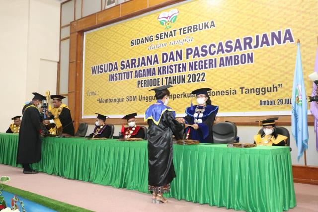 AMBON– Institut Agama Kristen Negeri (IAKN) Ambon Jumat (29/7/2022), melepaskan 57 wisudawan.