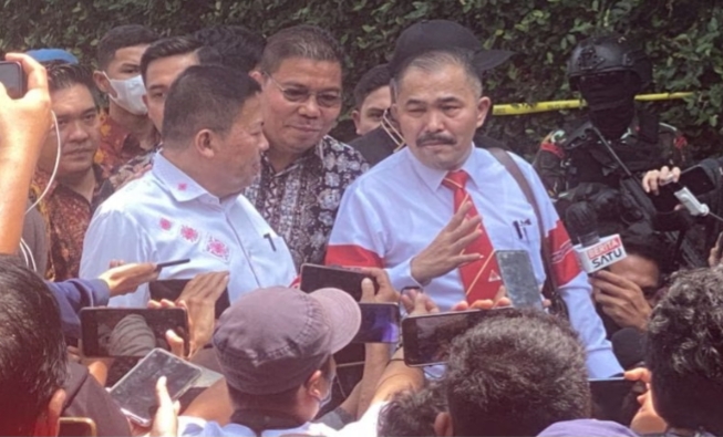 Kamaruddin Simanjuntak, pengacara keluarga Brigadir J, dan beberapa rekannya, terpaksa meninggalkan TKP Duren Tiga, Jakarta Selatan, Selasa.