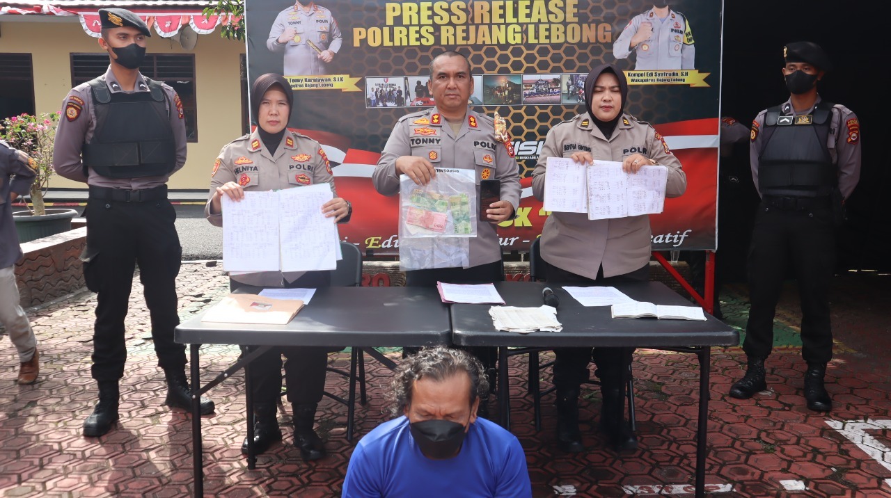 “Total uang yang kami sita Rp 626 ribu,” terang Kapolres Rejang Lebong AKBP Tonny Kurniawan saat memberikan keterangan kepada wartawan di Mapolres Rejang Lebong, Senin (29/8/2022). (Wartaprimasiberindo)
