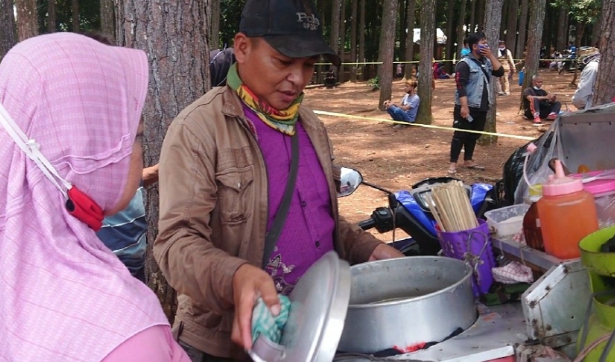 “Di masa pandemi Covid-19 para pedagang mendapat untung ketika gebyar vaksinasi di wana wisata sebab dagangannya diserbu pembeli yang ikut divaksinasi,” ucap Ayi.