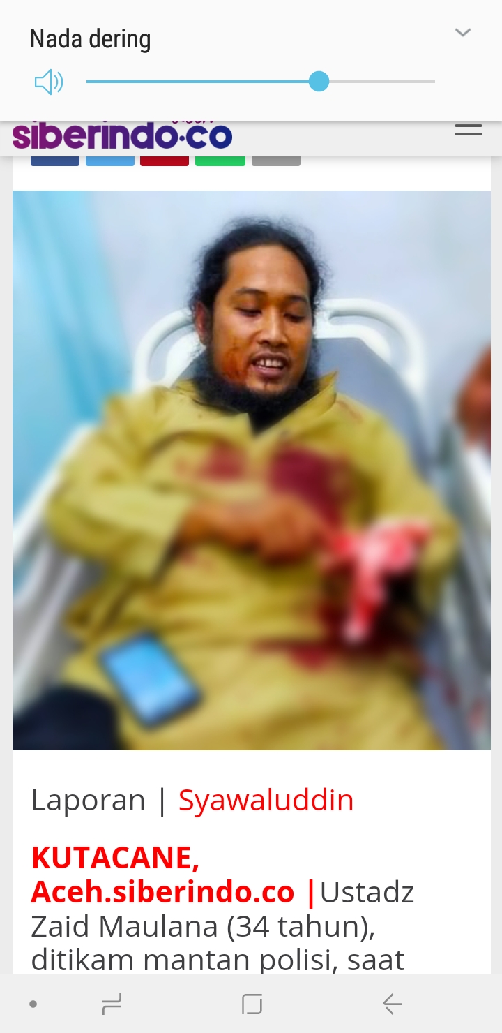 TUKUCANE — Ustadz Zaid Maulana (34) ditikam mantan polisi saat sedang memberikan tausyiah menyambut Maulid Nabi Muhammad SAW, di Desa Mbelang, Kecamatan Lawe Bulan, Kabupaten Aceh Tenggara, Aceh.