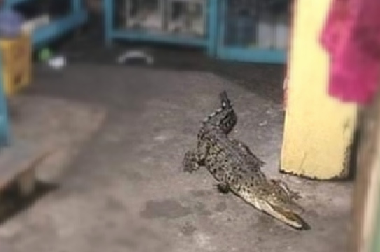 Keberadaan buaya tersebut disadari setelah secara tidak sengaja ekornya terinjak salah seorang warga.