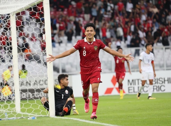 Penyerang sayap Indonesia, Witan Sulaeman, melakukan selebrasi usai menjebol gawang Kamboja di laga pertama Piala AFF 2022, Jumat (23/12/2022) sore. (Instagram @witansulaeman)