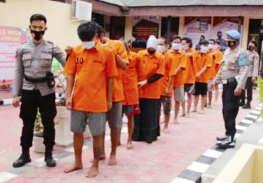 Kasat Narkoba Iptu Khairul Yassin Ariga, S.Kom mewakili Kapolres Pringsewu AKBP Hamid Andri Soemantri, SIK menjelaskan ke 22 tersangka ditangkap di 13 tempat terpisah, sejak 22 hingga 28 Maret 2021.