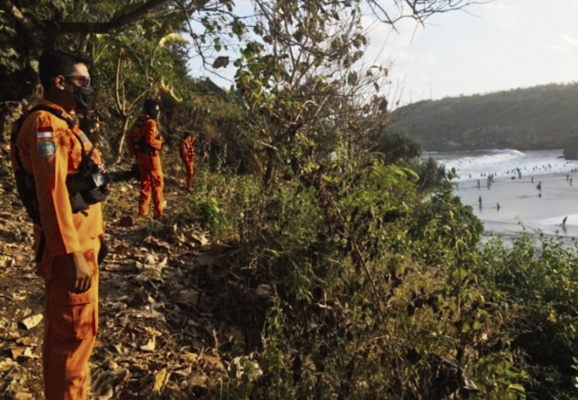 GUNUNGKIDUL – Dua wisatawan yang sedang berkemah di Pantai Ngluwen Gunungkidul terseret ombak ketika bermain air laut, Minggu, 30 Mei 2021 sekitar pukul 09.00.