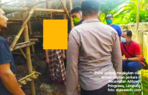 Wiji (63) warga Pekon Srikaton ditemukan dalam kondisi sudah meninggal, tergantung pada tiang bambu di belakang rumahnya.