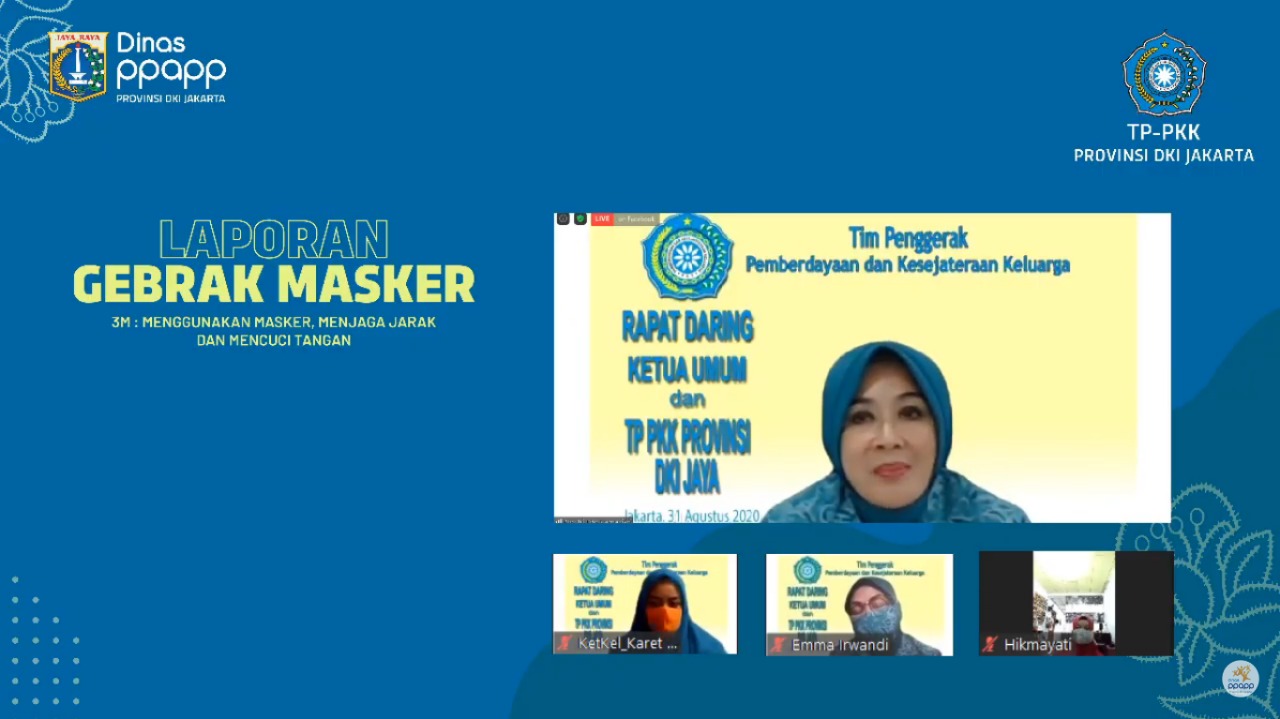 JAKARTA – Ketua Umum Tim Penggerak (TP) PKK Tri Tito Karnavian mengapresiasi pelaksanaan kegiatan Gebrak Masker yang dilakukan oleh Ketua TP PKK Provinsi DKI Jakarta beserta seluruh jajarannya. Hal itu disampaikannya saat menerima laporan secara virtual dalam acara Laporan PKK #GebrakMasker Ketua TP PKK Provinsi DKI Jakarta pada Senin (31/8).