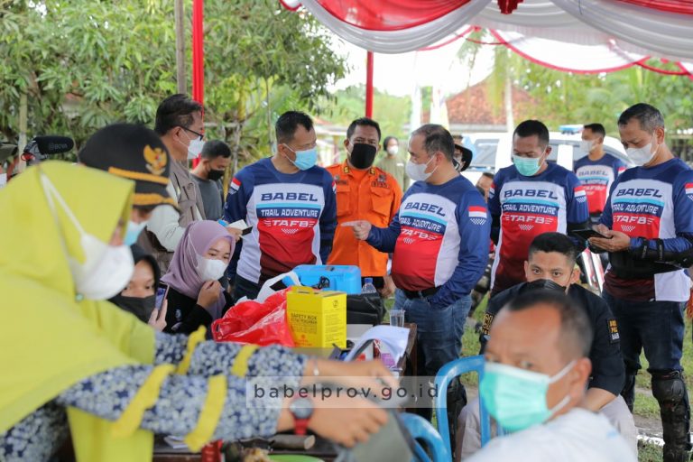 BABEL–Pelaksanaan vaksinasi Covid-19 gelombang kedua di Desa Jeriji, Kabupaten Bangka Selatan (Basel) berjalan dengan lancar saat ditinjau Gubernur Kepulauan Bangka Belitung (Babel), Erzaldi Rosman, bersama Forkopimda Babel, Minggu (29/8/2021).
