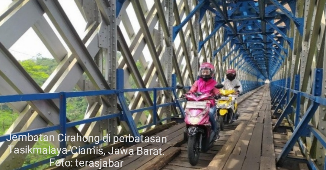 CIAMIS – Jembatan Cirahong di perbatasan Kabupaten Tasikmalaya dan Ciamis, hanya bisa dilintasi kendaraan roda dua dan pejalan kaki mulai September 2021.